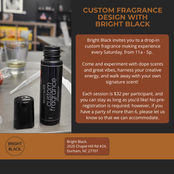 Bright Black invites you to a drop-in perfume making experience every Saturday, from 11a - 5p. Experiment with dope scents and great vibes,... Details